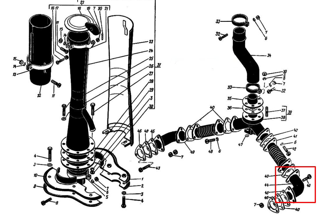 Höhe: 15,00 cm. Das linke Auspuffrohr 701.10.00.111 ist am Traktor Kirovets K-701 installiert. Das Rohr dient zum Abführen der Abgase während des Betriebs der Motoreinheit des Motors.